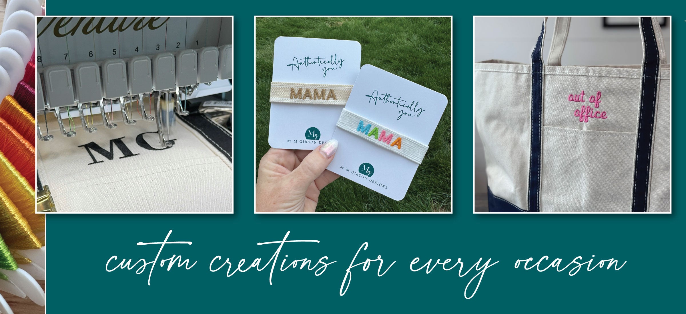 Make it yours (or theirs!) with our custom embroidery. Whether it’s a name, initials, sports team or your favorite phrase, we’ll add your personalization for a clean, custom look that feels extra special — just how we like it at M Gibson Designs.